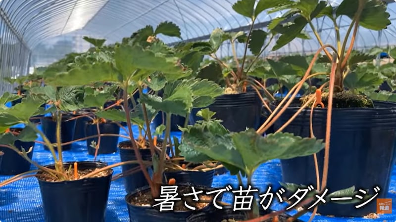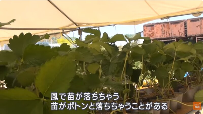 古都華は栽培に手間がかかる品種。風などで苗が落ち、地面につくと病気のリスクが高まるため、栽培できなくなってしまいます。実は知希さん、イチゴ栽培はまったくの素人。扱いに不慣れなこともあり、すでに貴重な株を7つも落としてダメにしてしまいました。