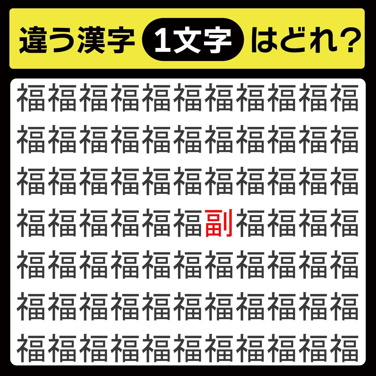 違う漢字は、上から4行目、右から5番目の文字でした!