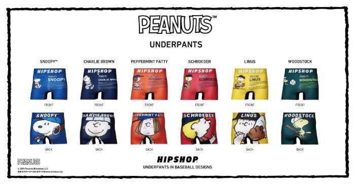HIPSHOPの人気シリーズ「PEANUTS」に新デザインが登場!2026年1月23日(金)発売のベースボールモチーフは、野球ユニフォーム姿のスヌーピーや仲間たちがアースカラーベースに並ぶスポーティなデザイン。大人からキッズまで楽しめる全ラインナップで、日常もアクティブもプレイフルに彩ります♡