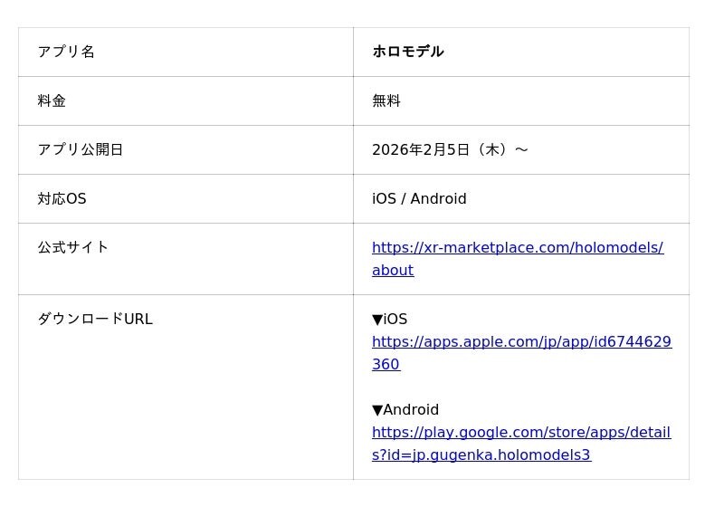 ※従来提供していた「ホロモデル」アプリは「ホロモデルロケーション」と名称を変更し、今後も引き続きご利用いただけます。