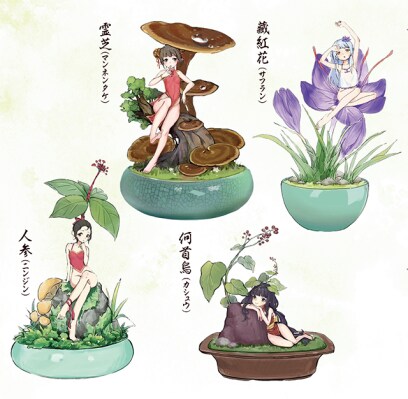 今回のワンダーフェスティバルでは、「漢方精霊」の着色済みミニフィギュアを展示いたします。漢方精霊は、生薬の成分と薬効を導く霊的個性をイメージして生まれたキャラクター。北京在住のイラストレーター「KOTORI」がイメージイラストを担当しています。