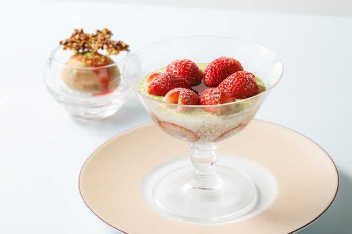 トップにはフレッシュなイチゴとライムゼストをのせ、春の彩りを楽しめます(2,200円税込)。