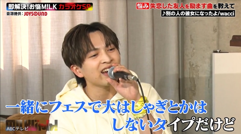 【TVer】M!LK山中柔太朗も失恋で傷心? 「初めてのキス覚えてんだろ!?」「元気出せ!」 曽野舜太が菅田将暉の『さよならエレジー』を歌って励ました結果は……!?