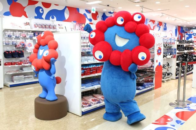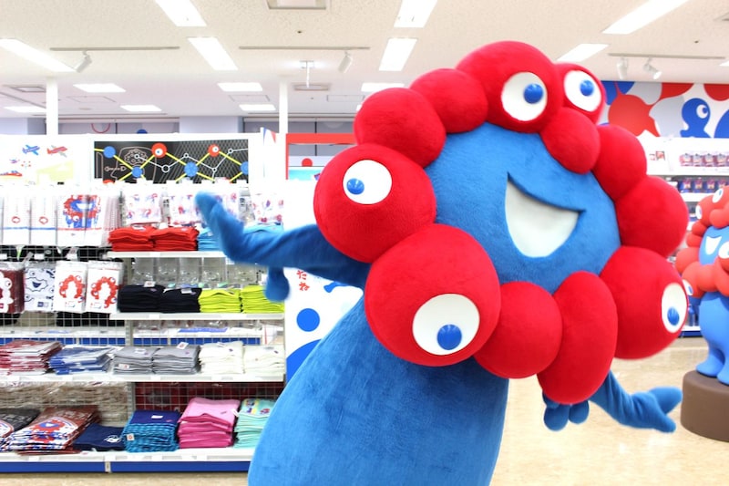 リニューアルオープンの初日にはミャクミャクも駆けつけ、パワーアップした店内を見学。内覧会に集まったメディアに向けて、バラエティ豊かな商品を見て回るかわいい様子も見せてくれました。