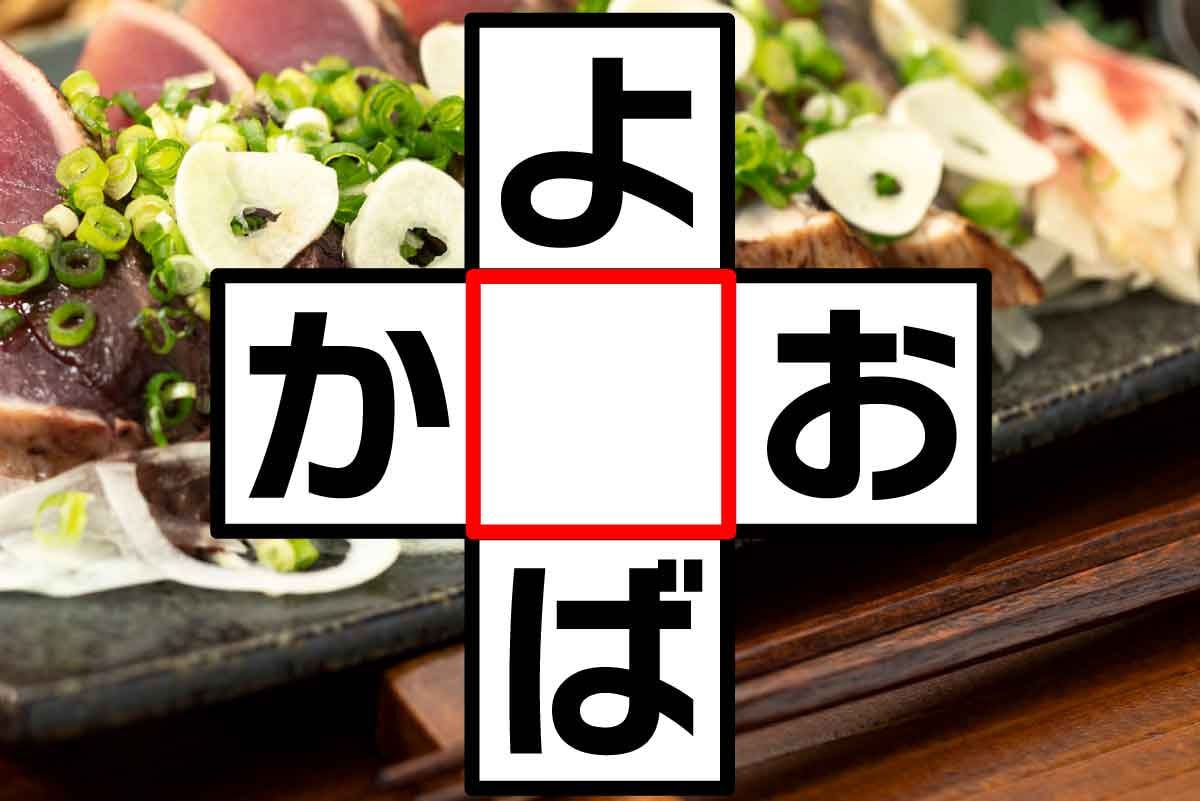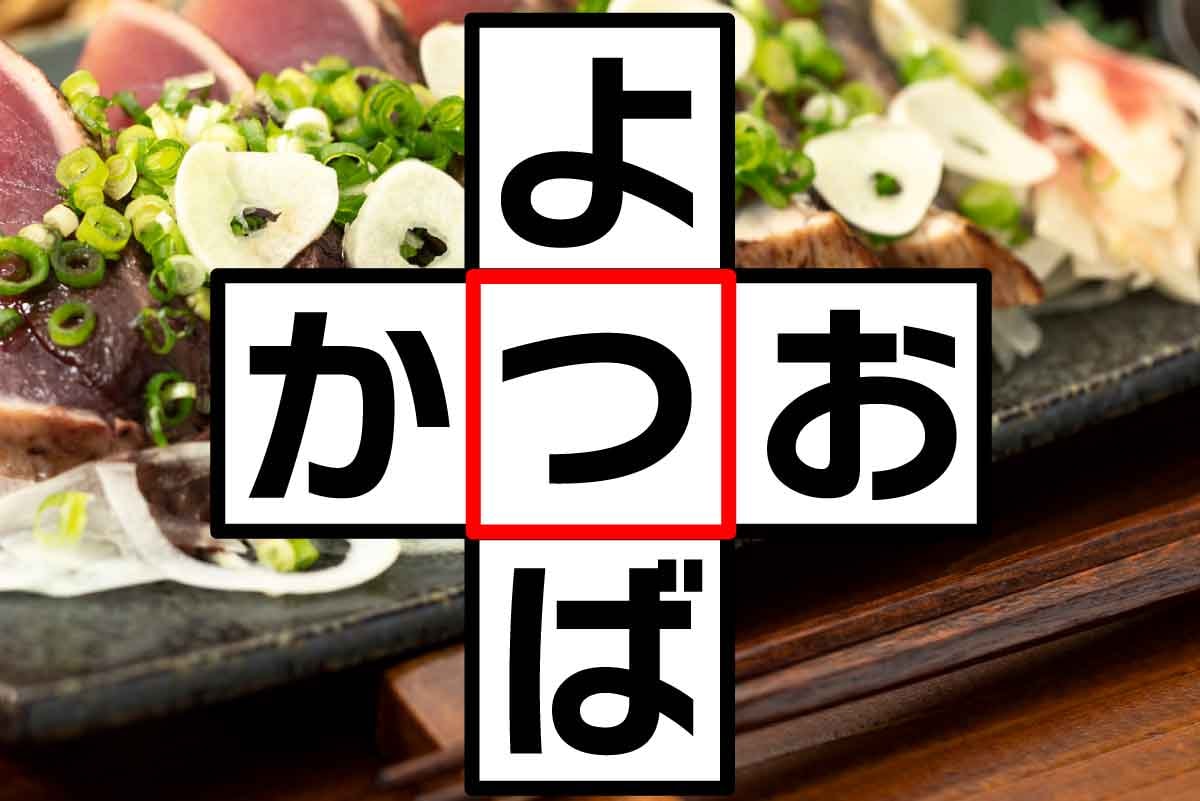 【問題】空欄に入るひらがなは? 【ヒント】タテ:幸運を呼ぶクローバーといえば?ヨコ:「初か○お」「戻りか○お」と呼ばれる年に2度の旬がある魚は?