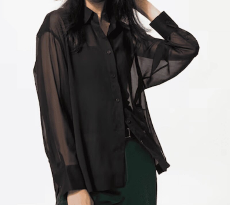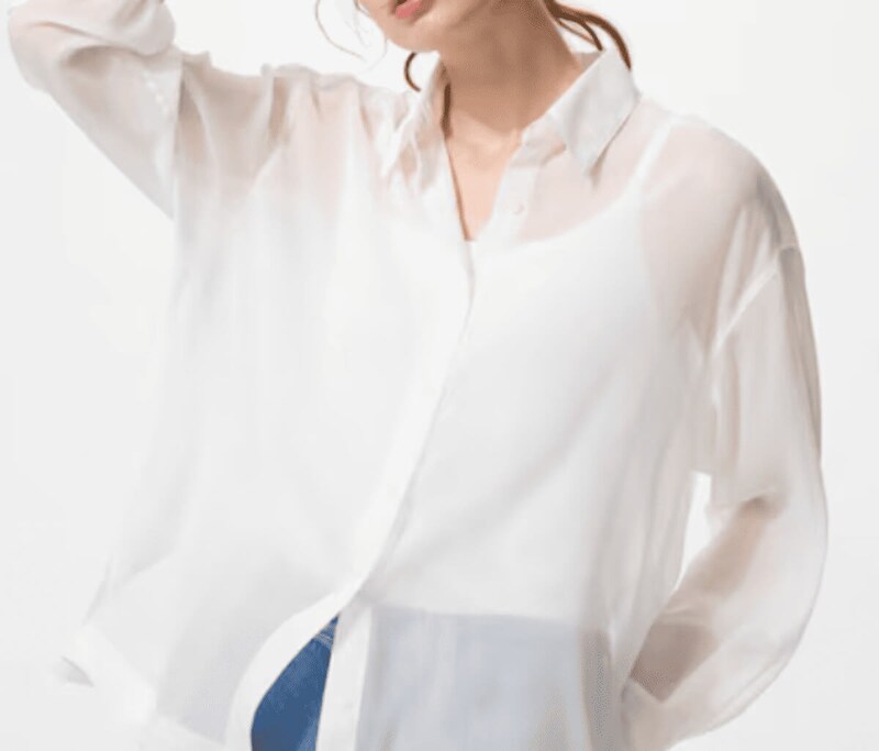 シアーな素材感で、トレンドのレイヤードコーデを手軽に楽しめるシャツ。今っぽくて着回し力抜群、そして体型カバーもできる万能アイテムです。