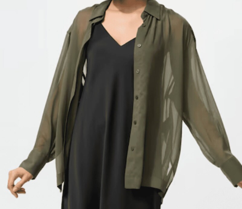 ボタンを閉めてブラウス感覚で着用したり、ボタンを開けて羽織ものとして着用したりと、さまざまなスタイリングを楽しめるのが魅力。薄手なので、夏から秋への季節の変わり目に大活躍してくれます。