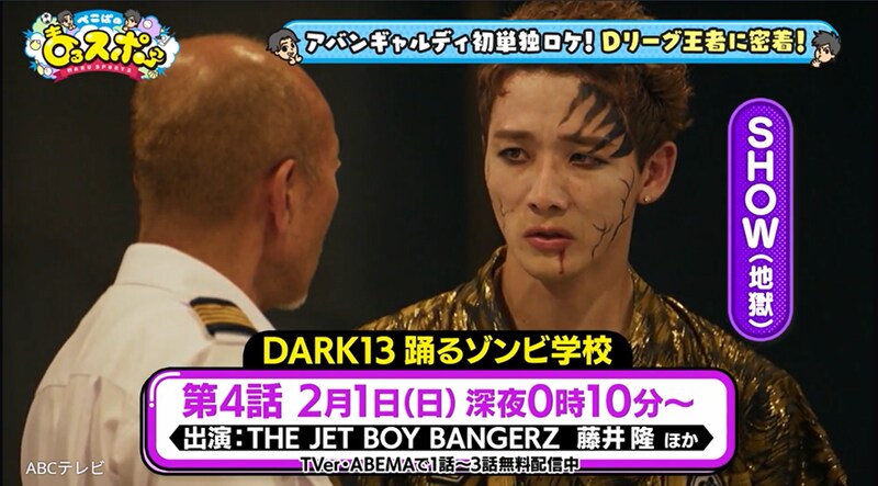 地獄は、CyberAgent Legitの中心的メンバーでありながら、LDHの10人組ダンス&ボーカルグループTHE JET BOY BANGERZにも所属。さらには役者として、ABCテレビで1月11日深夜から放送が始まったドラマ『DARK13 踊るゾンビ学校』に出演し、活躍の場を広げている。