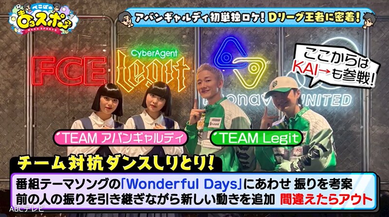 ダンスのクオリティだけでなく、記憶力や即興力が求められるこの対決で、両チームとも序盤はノリノリ。しかし、途中から自信がなくなっていき、2週目に突入したところでKohana︎が微妙に振付を間違えたため、勝者はCyberAgent Legitチームに決定した。
