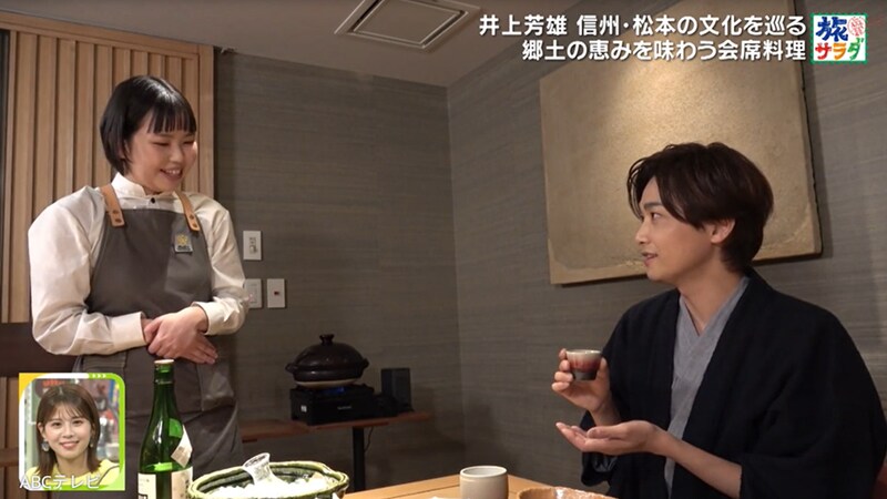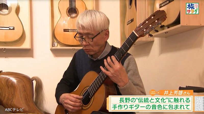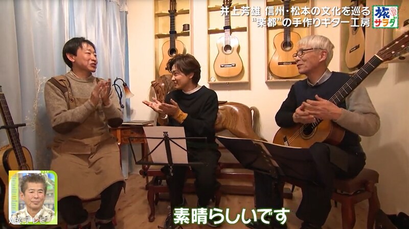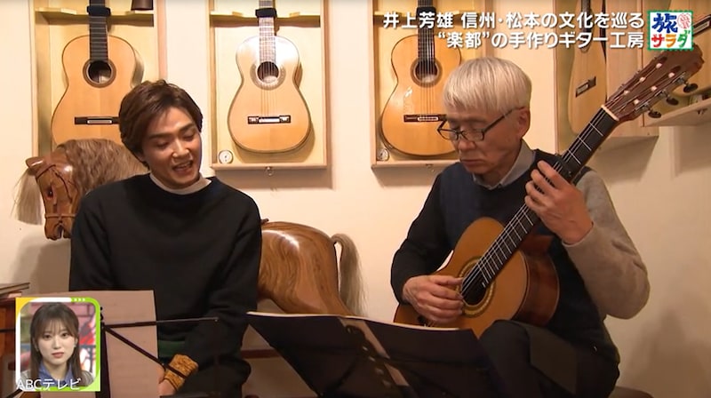 ミュージカルを中心に活躍している井上は、2024~2025年度放送のNHK大河ドラマ『べらぼう~蔦重栄華乃夢噺~』への出演で話題になったことが記憶に新しい。『朝だ!生です旅サラダ』のロケで井上が訪れた長野県松本市は、昔から楽器作りが盛んで、⾳楽文化が発展したことから“楽都”と呼ばれている。松本の手作りギター工房にやってきた井上は、同工房のギターを愛用する男性ギタリストの伴奏で歌うことになった。