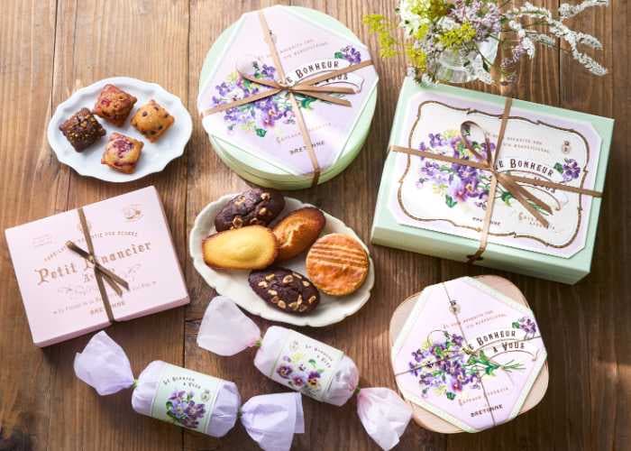 キャンディ型パッケージが愛らしい「プティ・ギフト〈プランタン〉」は、フィナンシェとマドレーヌを各1個詰め合わせた2個入で562円。スミレやビオラのイラストが春気分を高めてくれます。