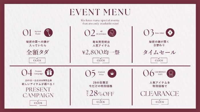 さらに日替わりタイムセールや28の日限定MAX28%OFFなど、見逃せない企画が多数。SNSでの参加でお得に楽しめる、年に一度のスペシャルイベントです♡