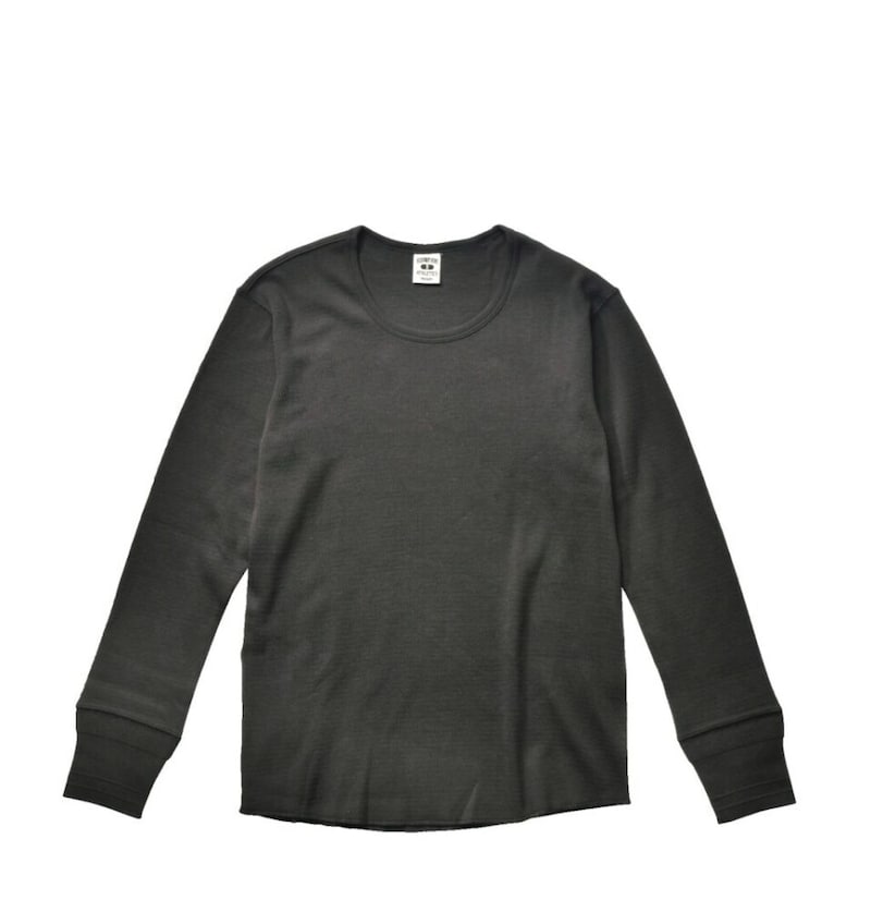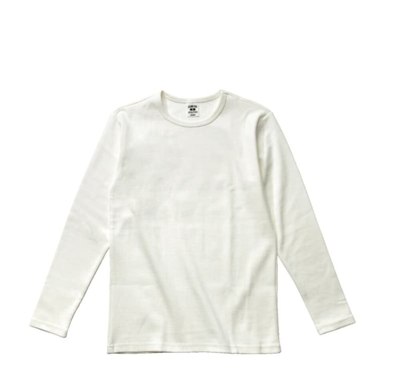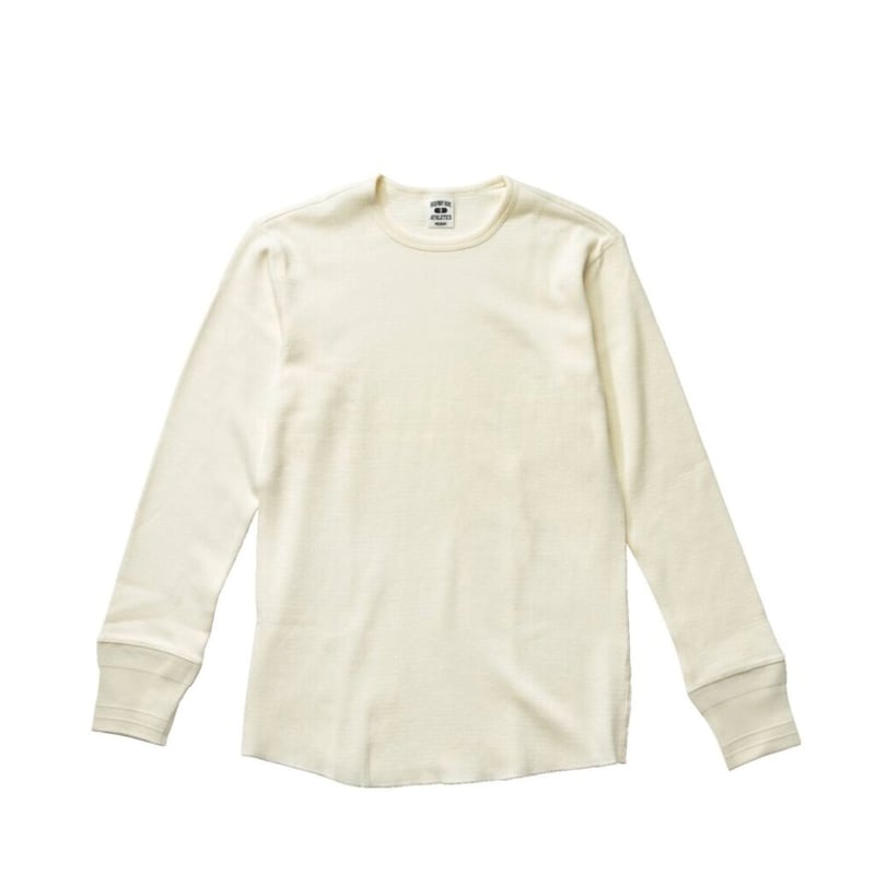 蜂の巣柄に編み込まれたサーマル素材を使用し、肌触りが非常にいいのが特徴。袖口はリブの編み立て仕様に。クルーネック、Uネック、ヘンリーネックが選べ、カラーはリブT同様の3色をラインナップ。