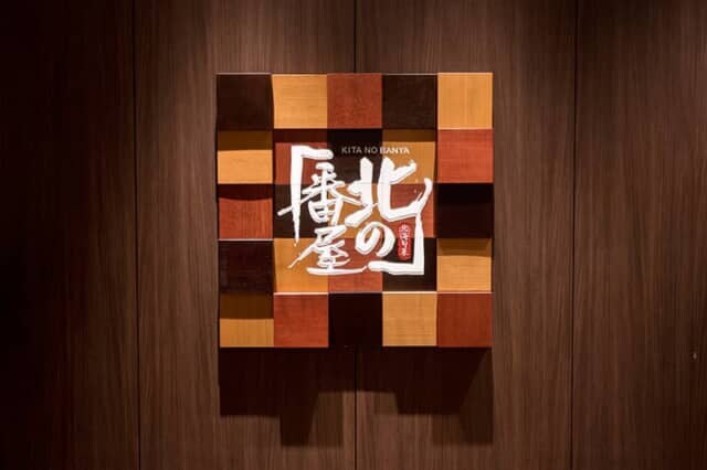 寄木細工を思わせる看板には北国の海の厳しい環境を表現したかのような「北の番屋」のロゴが印象的。どんな料理をいただけるのか、気分が盛り上がります。