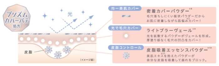 毛穴パテ職人共通のプリズムカバーパテ処方により、光を味方につけた薄膜カバーを実現。