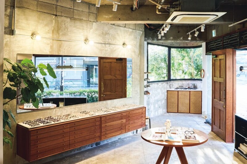 学芸大学から徒歩約4分ほどの場所に位置。さまざまなサイズを取り揃え、道具として最低限考慮すべきメガネの選び方をカジュアルに伝える。