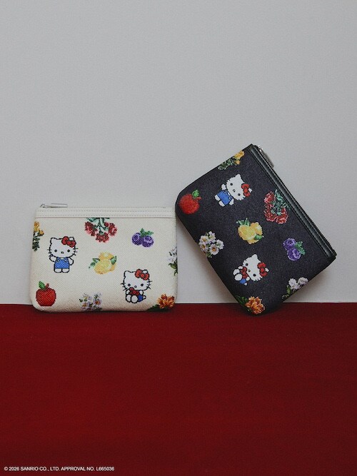 ハローキティキティとフルーツミックスを組み合わせた、SSらしいキャッチーなAmeriオリジナル柄のポーチ。
