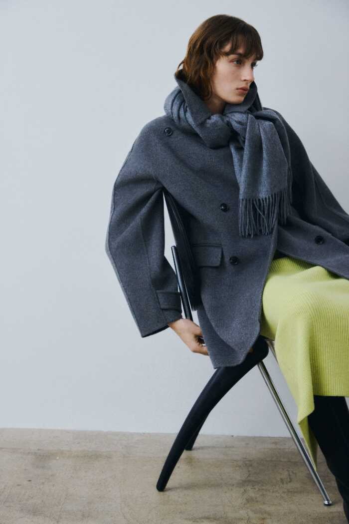さらに「マフラー付ハーフ丈ノーカラーリバーCT」(25,960円)は多彩な巻き方ができるマフラー付きでアレンジ自在。