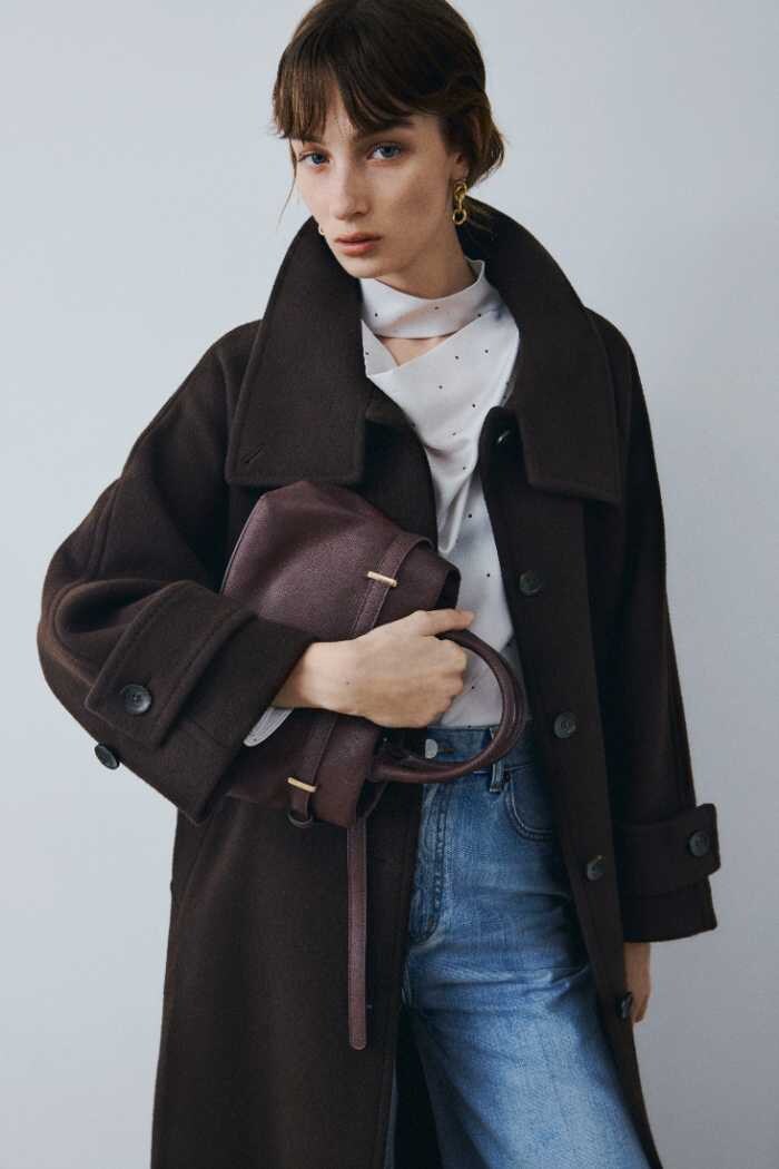 「ビッグカラーウールコート」(44,000円)は存在感あるカラーと美しいスリムシルエットで、オンにもオフにも活躍します♪