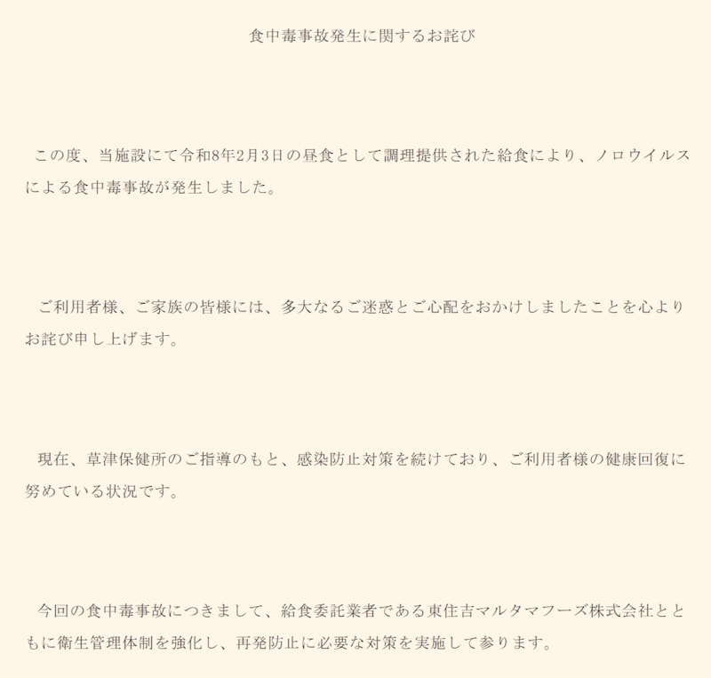 また、施設の運営元・社会福祉法人『誠光福祉会』は、ホームページで「ご利用者様、ご家族の皆様には、多大なるご迷惑とご心配をおかけしましたことを心よりお詫び申し上げます」と謝罪した。