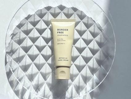 ボーダーフリーコスメティクス「レチノUVハンドクリーム」(40g/2580円)は、SPF11 PA+++で、UVケアしながら、2種のレチノール配合でエイジングケアもできます。しっとり整うのにベタつかないのも好印象です。