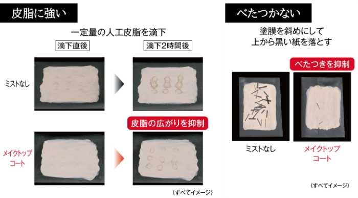 「ケイトメイクトップコート」は、ミストがミクロレベルで均一に広がり、ピタッと膜へ変化する「ミクロトップコート技術」を採用。