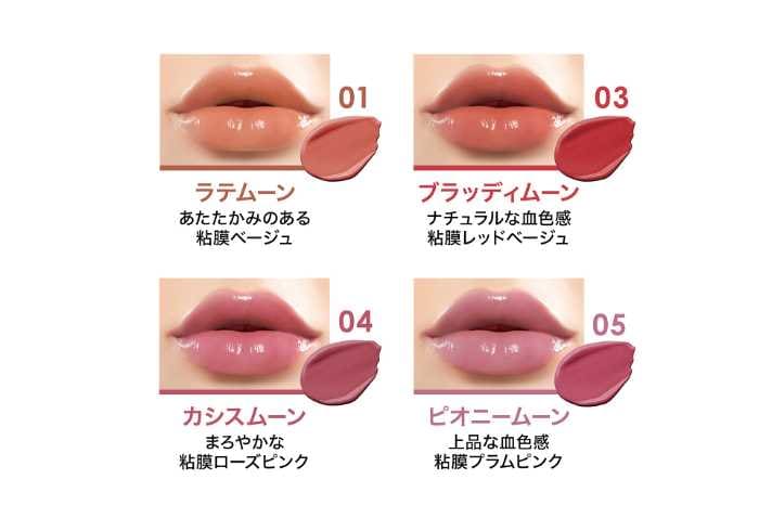 01ラテムーン、03ブラッディムーン、04カシスムーン、05ピオニームーン