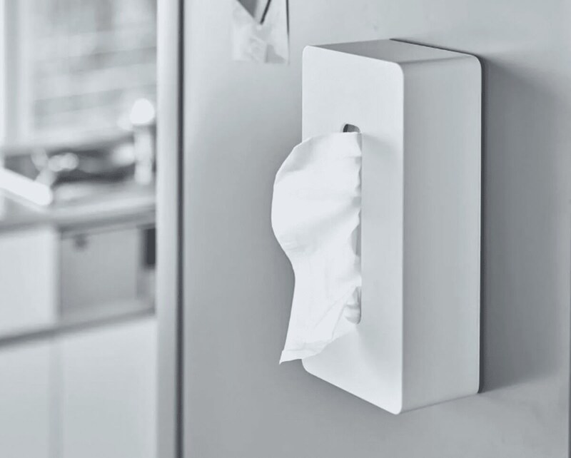 冷蔵庫などにくっつけて使える、マグネットタイプのティッシュケースです。デッドスペースを活用でき、お部屋がすっきりと片付きます。