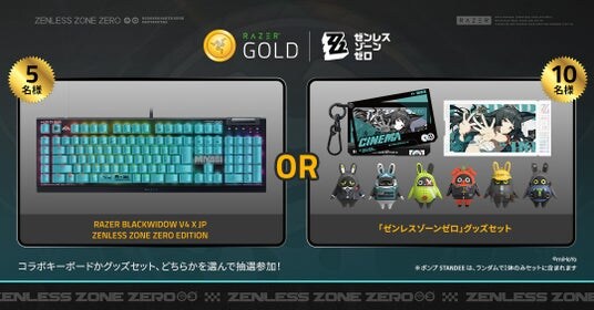 本キャンペーンは期間限定で全国のローソン店舗にて実施され、Razer Goldは株式会社ローソンと連携し、日本全国のファンに向けて『ゼンレスゾーンゼロ』コラボキーボードおよびグッズを提供します。2026年2月9日から3月8日までの期間中、全国のローソン店舗にてRazer Gold ギフトカード(バリアブルタイプ)を合計3,000円以上購入したお客様は、賞品が当たる抽選に応募することができます。