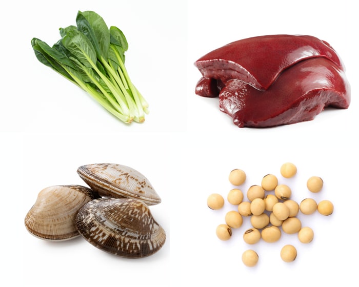 まずは、鉄分を中心とした食事を摂りましょう。赤身の肉やレバー、あさり、小松菜、ひじきや大豆製品を意識的に摂ることで、貧血を予防する効果が期待できます。