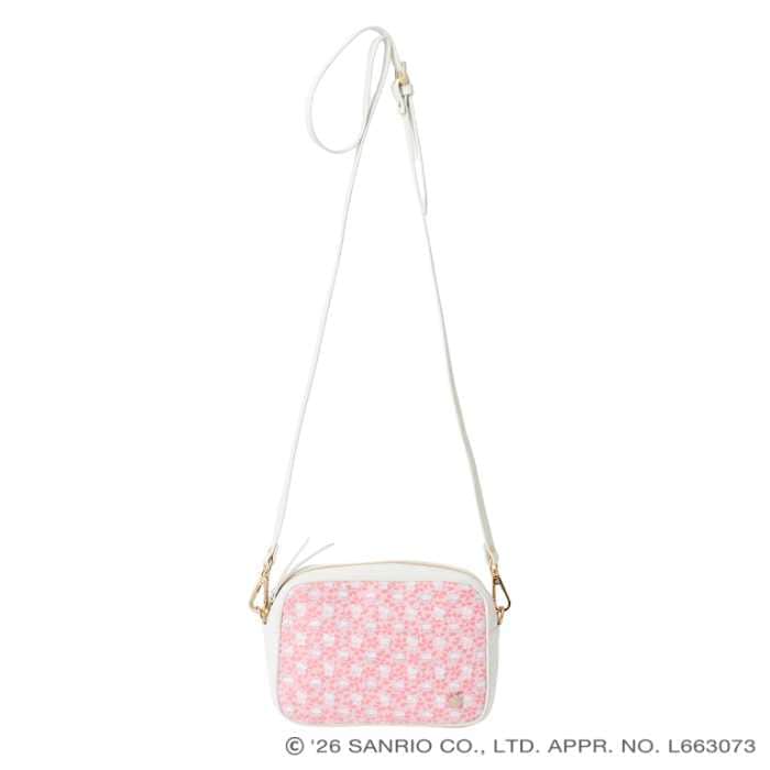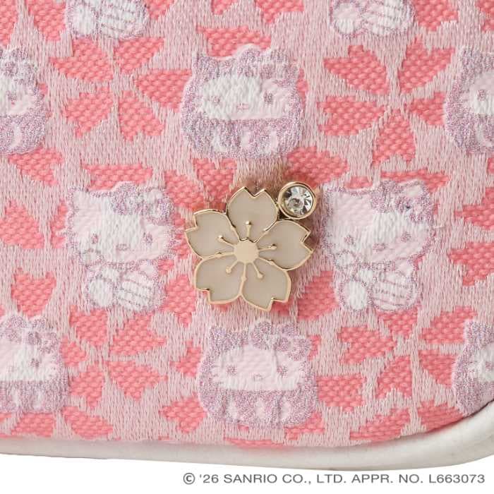 桜柄西陣織にハローキティをプリントした和モダンなバッグは、日常使いにぴったりのコンパクトなサイズ。
