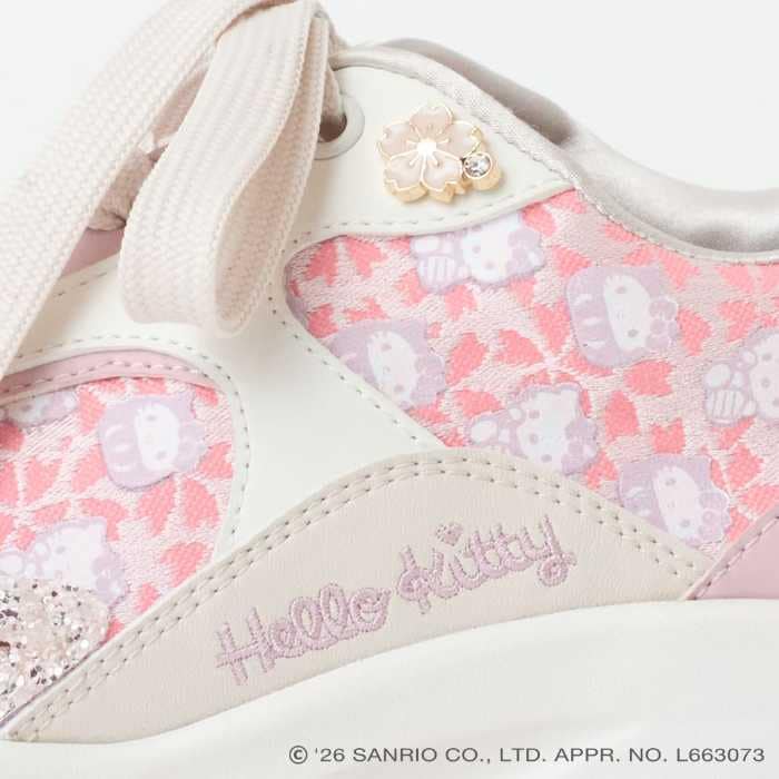 和の繊細さとハローキティの愛らしさを融合したデザインが魅力。桜スタッズとビジューが高級感をプラスします。