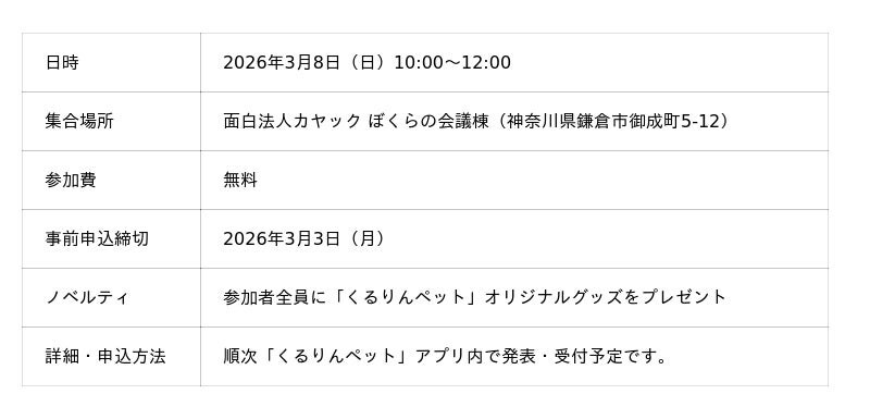 実証実験期間中の2026年3月8日(日)には、ゴミ拾いをスポーツとして楽しむ「スポGOMI」(https://www.spogomi.or.jp/)と「くるりんペット」のコラボレーションイベントを鎌倉市内で開催します。