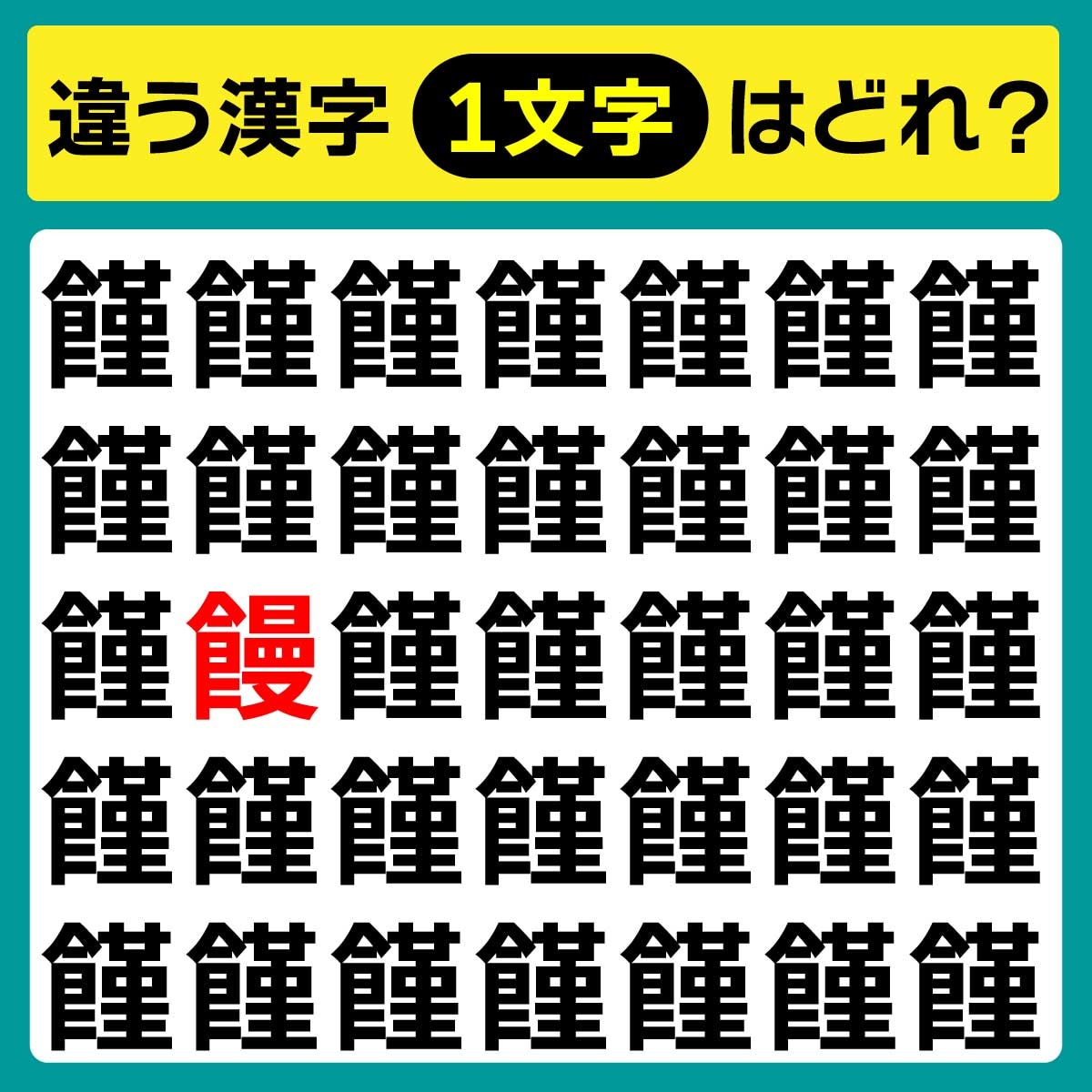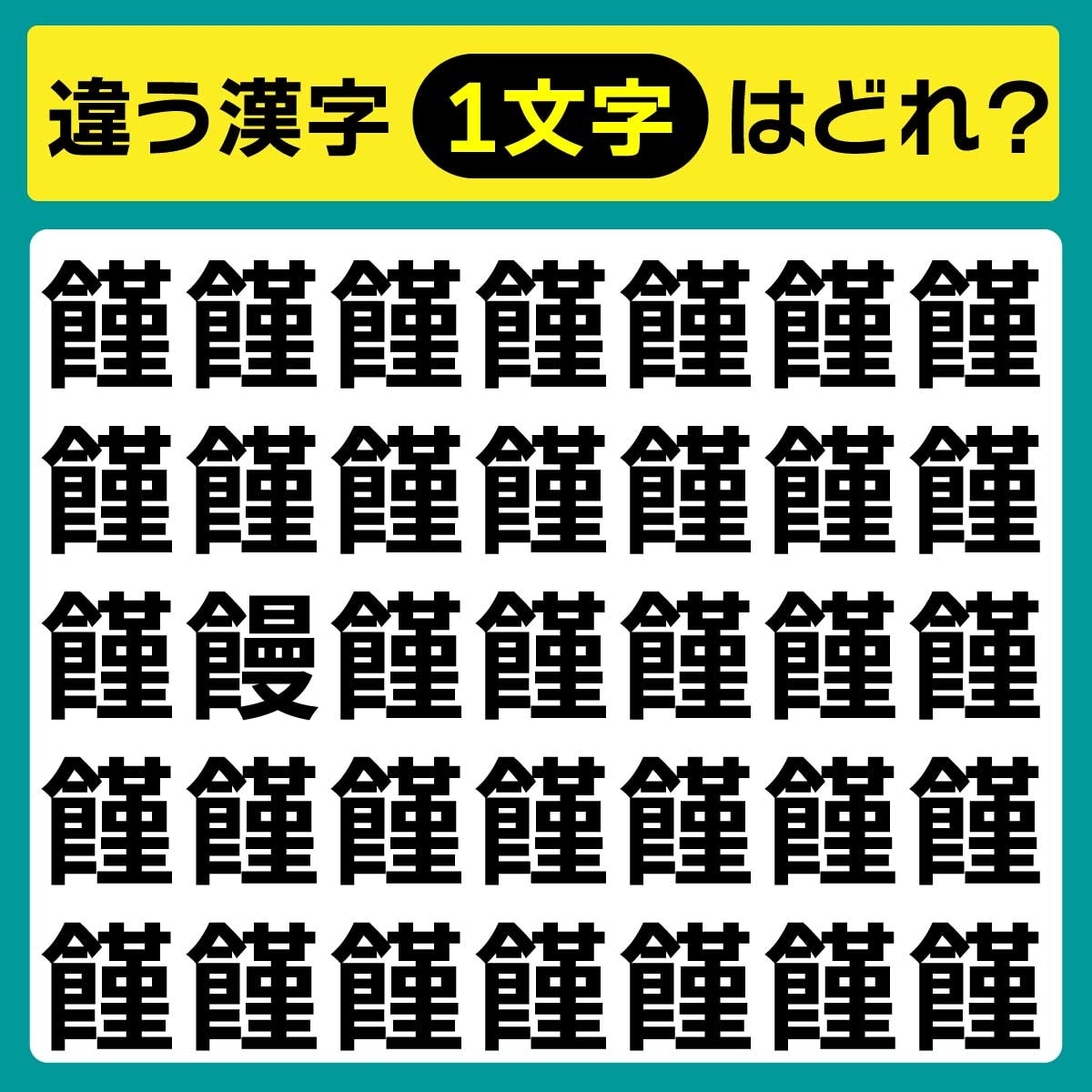 違う漢字は、上から3列目、左から2番目の文字でした!