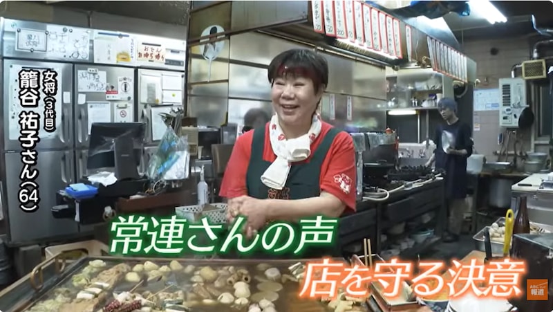 神戸・兵庫区の新開地駅から歩いてすぐ、赤いテントが目印の「高田屋京店」は創業95年。店を切り盛りするのは3代目で女将の籠谷祐子さん(64)。13年前からは、祐子さんの息子で4代目の鈴木拓矢さん(33)が社長を務めています。