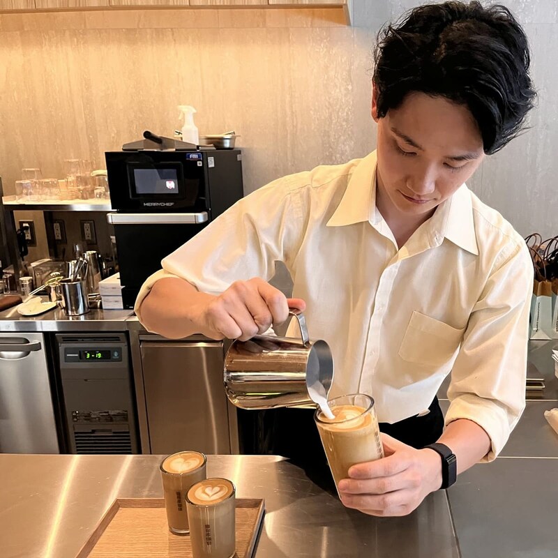 訪れたこの日は、たまたま有名なバリスタ、伊藤大貴さんが店頭に。「ワールド バリスタ チャンピオンシップ2025」で世界5位に輝いたバリスタが、目の前でコーヒーを淹れてくれるという、思いがけないタイミングでした。通常は京都祗園店におられないので、ラッキーでした。