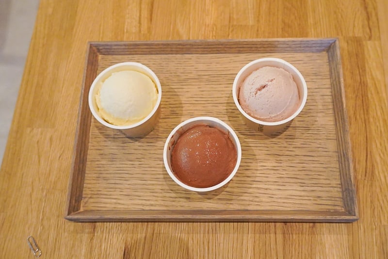 「アイスクリーム」左から「和三盆みるく」「山椒とチョコレート」「ニッキと木苺」(イートイン各550円)