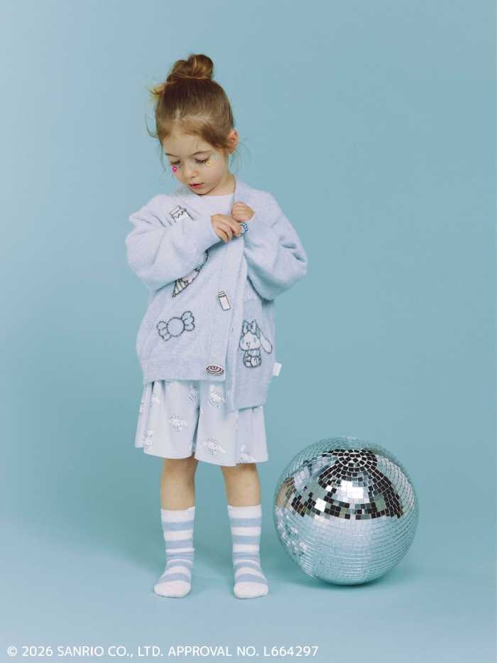【KIDS】スムーズィーカーディガン8,910円、総柄ショートパンツ4,290円、スムーズィーボーダーソックス2,970円はサイズ90、110で展開。