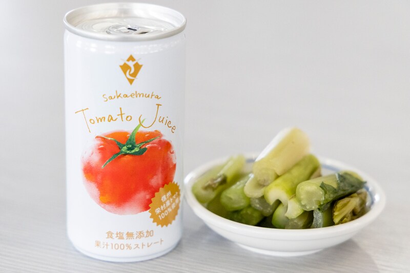 トマトつけ麺にも使われている村の特産品「トマトジュース」も、ひと味違う。生産を担うのは一軒の農家。その美味しさの理由は、収穫方法にある。加工用トマトの多くが機械収穫されるなか、ここでは完熟した実だけを手摘み。青い実が混ざらないことで、完熟100%の雑味のない濃厚な味わいに仕上がる。その年の気候によって風味は変わり、今年は「過去最高」の出来だという。