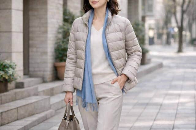 薄手ダウンが似合わないと感じたときは、アイテム選びより着こなしの見直しが効果的。横に広がりやすい特性を理解し、縦のラインと余白を意識するだけで、スタイルアップは十分に叶います。ぜひ見せ方を工夫して薄手ダウンを上品に楽しんでみてください。<text:ミミ 監修:YOMI(パーソナルスタイリスト)> ※画像は生成AIで作成しています