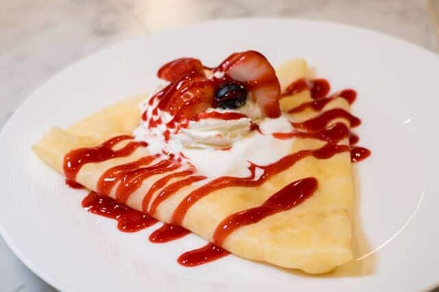ライブキッチンで注文する「クラフトクレープ」は、目の前でスタッフが1枚1枚丁寧に焼き上げ、クリームやソースなどのトッピングを選べます。生地もモチモチで、出来立ての美味しさを体験できました。