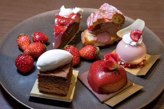 多彩な味を用意するケーキやスイーツに加え、風味豊かなセイボリーやパスタ、目の前で絞ってもらえるいちごのモンブランなど、ホテルブッフェを思う存分満喫することができました。