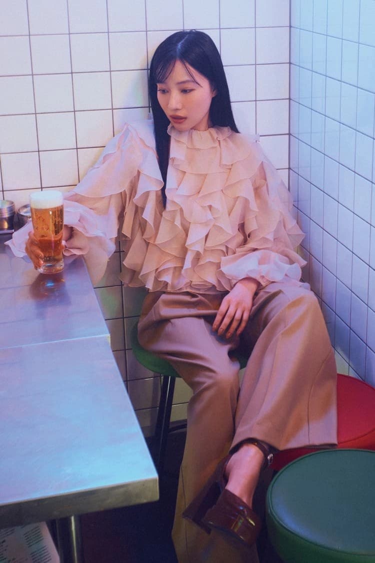 座っていても女性らしさをかもし出せる、ビジュ盛れ確実なトップスがお強い。