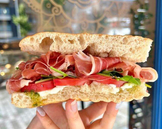 「anello panimi KOBE」は、神戸・東灘のパニーニ専門店。「生ハムとカプレーゼのパニーニ」など、ふかふかフォカッチャにフレッシュな具材をたくさん挟み込んだ本場のメニューを楽しめます。