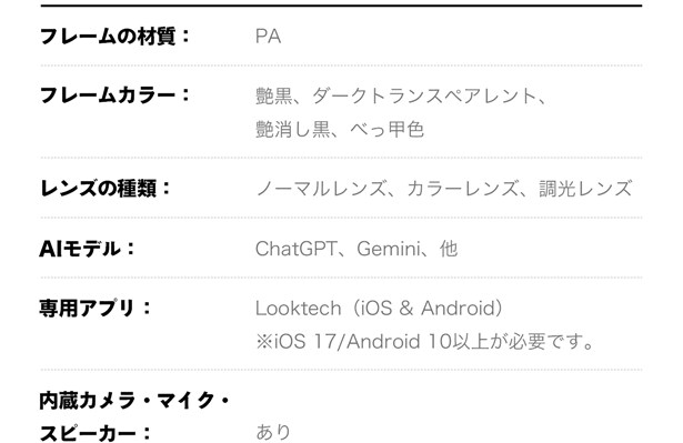 「Looktech」は革新的なAIアシスタントを搭載し、ライフスタイルを学習してスケジュール管理から翻訳、情報検索まで行うことができるスマートグラス。