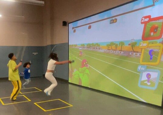 なわとびを速く跳ぶほど、キャラクターがスピードアップ!