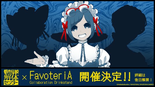 FaboteriAにて『都市伝説解体センター』のコラボカフェの開催が決定いたしました。墓場文庫・きっきゃわー氏の描き下ろしイラストを使用したグッズを展開予定となっております。時期や内容などの詳細は後日FaboteriA公式X( https://x.com/FavoteriA_info )でご案内予定です。