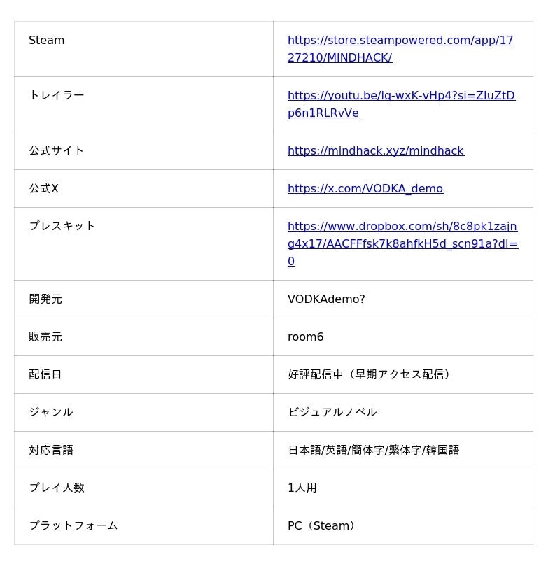 『MINDHACK』は現在早期アクセス中です。早期アクセス期間中にご購入いただいた方は、将来的に追加のお支払いなく正式リリース版を遊んでいただけます。本編ストーリー以外にも、タイピングの成績によって解放されるおまけ資料など、盛りだくさんのボリュームでお届け。精神破壊の快感をお楽しみください。