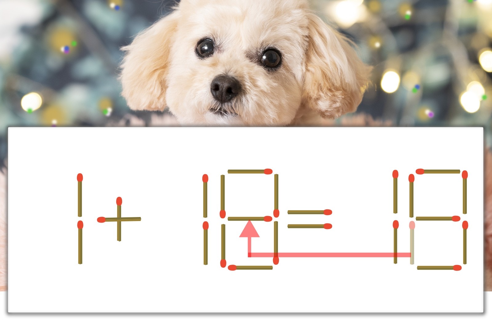 「8」を別の数字に変化させると答えが導き出せます。「8」のマッチ棒を1本移動して、「0」を「8」にしてみましょう。すると、「1+18=19」が成立します。