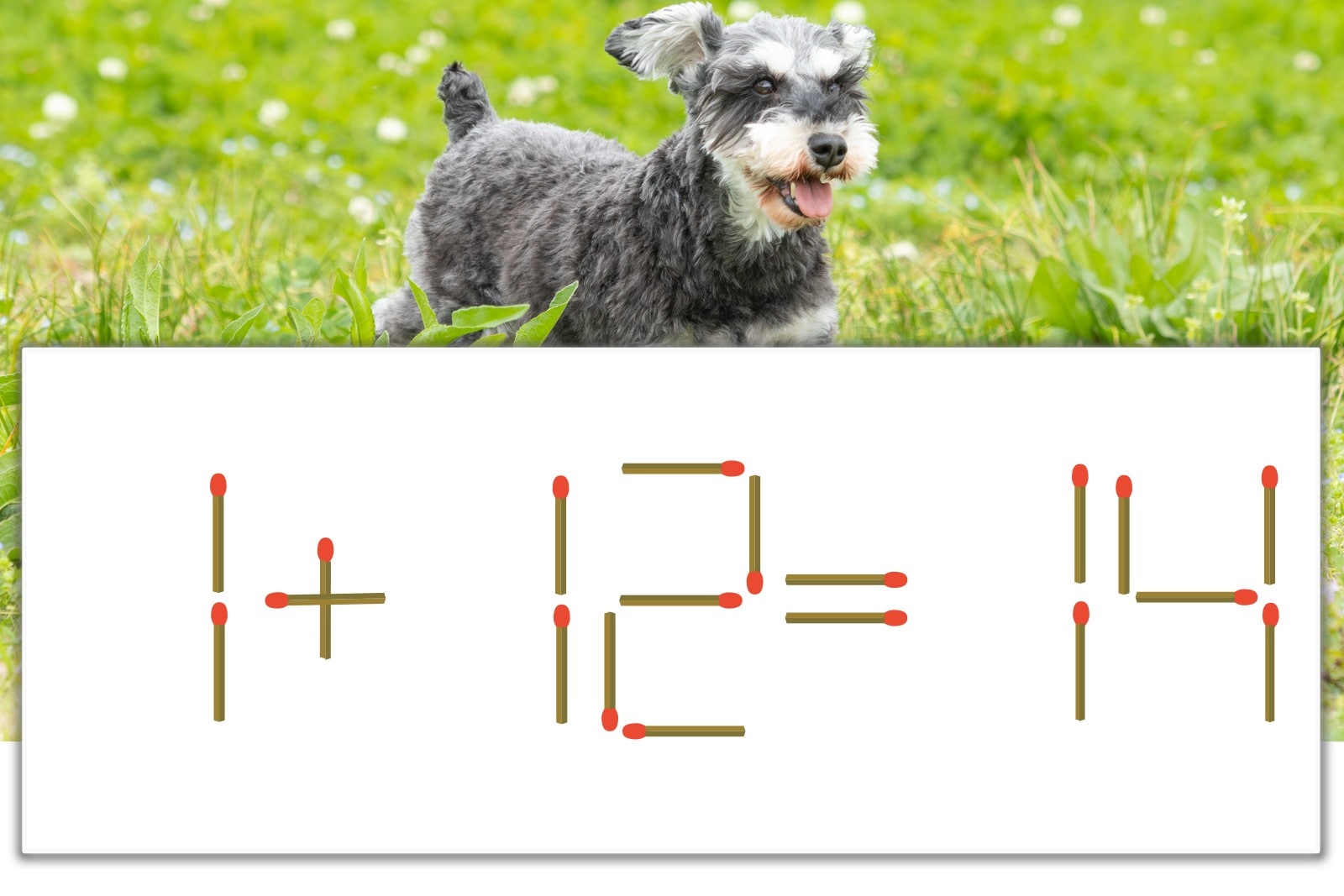 「2」のマッチ棒を1本、右にスライドさせて「3」を作り、「1+13=14」にする。※解答は複数ある場合があります。